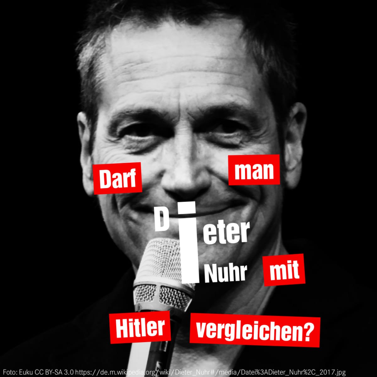 Klar darf man Dieter Nuhr mit Hitler vergleichen - man käme dann wahrscheinlich zum Ergebnis, dass sie außer der einen oder anderen Überschneidung ihrer Fan-Gemeinschaft wenig gemeinsam haben.