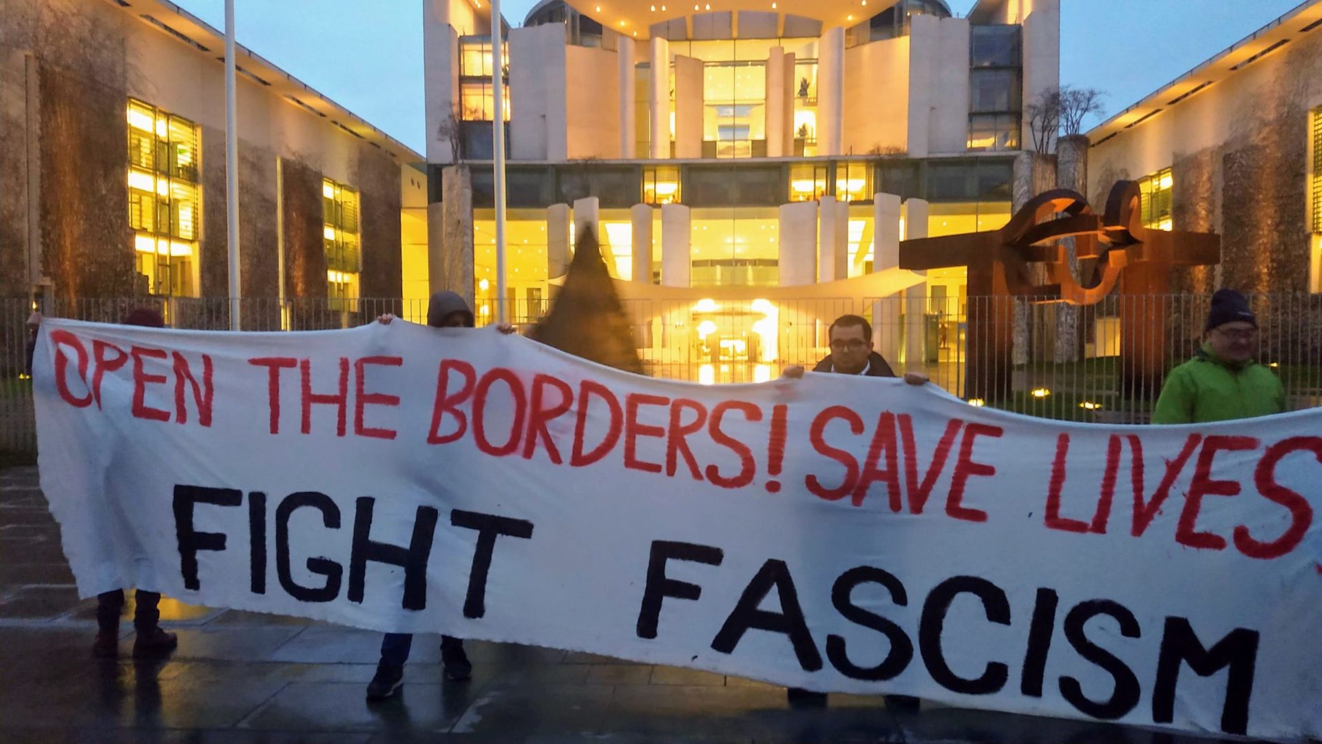 Jetzt vorm Bundeskanzleramt in Berlin, viele solidarische Menschen. Danke Seebrücke für die kurzfristige bundesweite Mobilisierung.