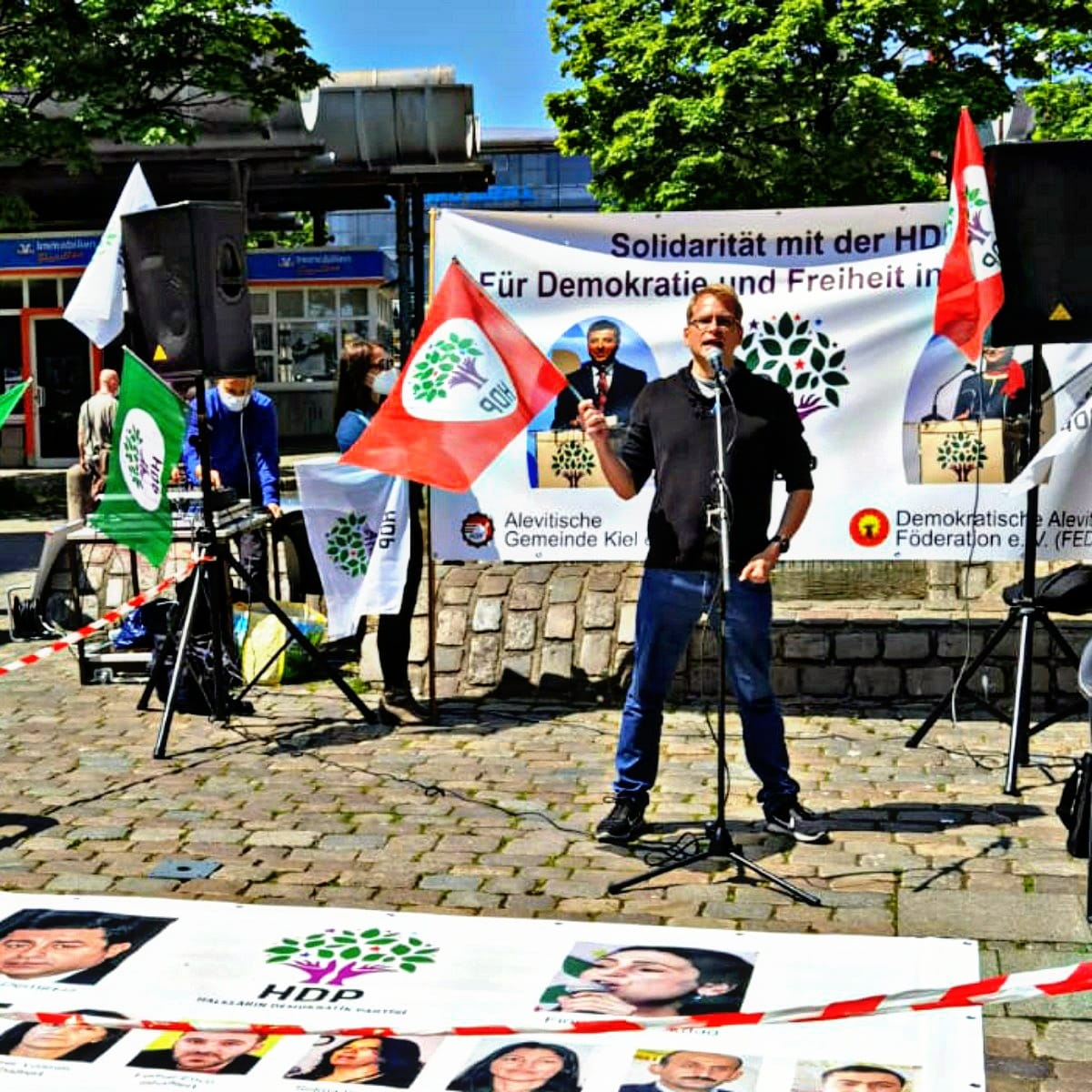 Solidarität mit der #HDP und den politischen Gefangenen in der Türkei. Heute habe auf der Kundgebung der HDP in Kiel die Solidarität der Genoss*innen der DIE LINKE für unsere vom Verbot bedrohte Schwesterpartei überbracht.
