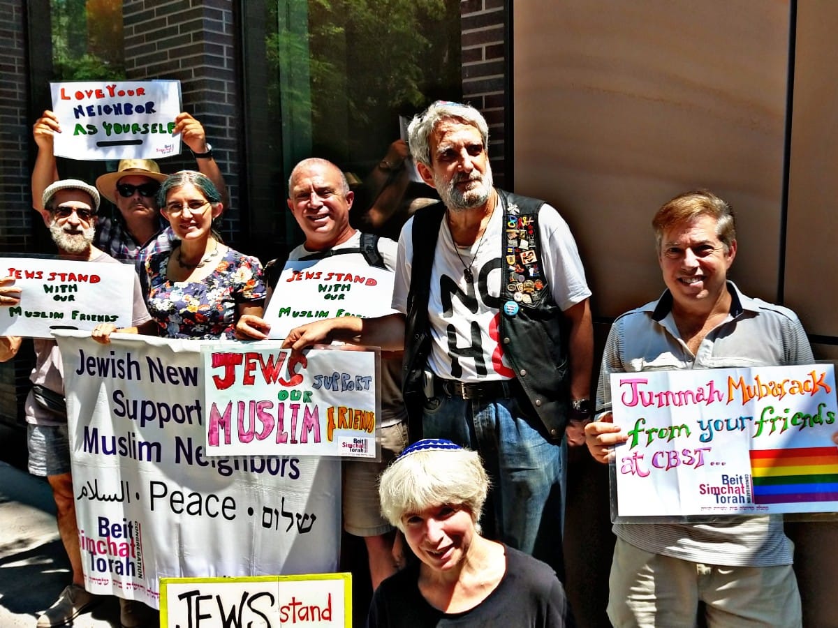 Seit Trump Präsident geworden ist, demonstrieren Mitglieder der Beit Simchat Torah Synagoge gegen Hass, Rassismus und Muslimfeindlichkeit.