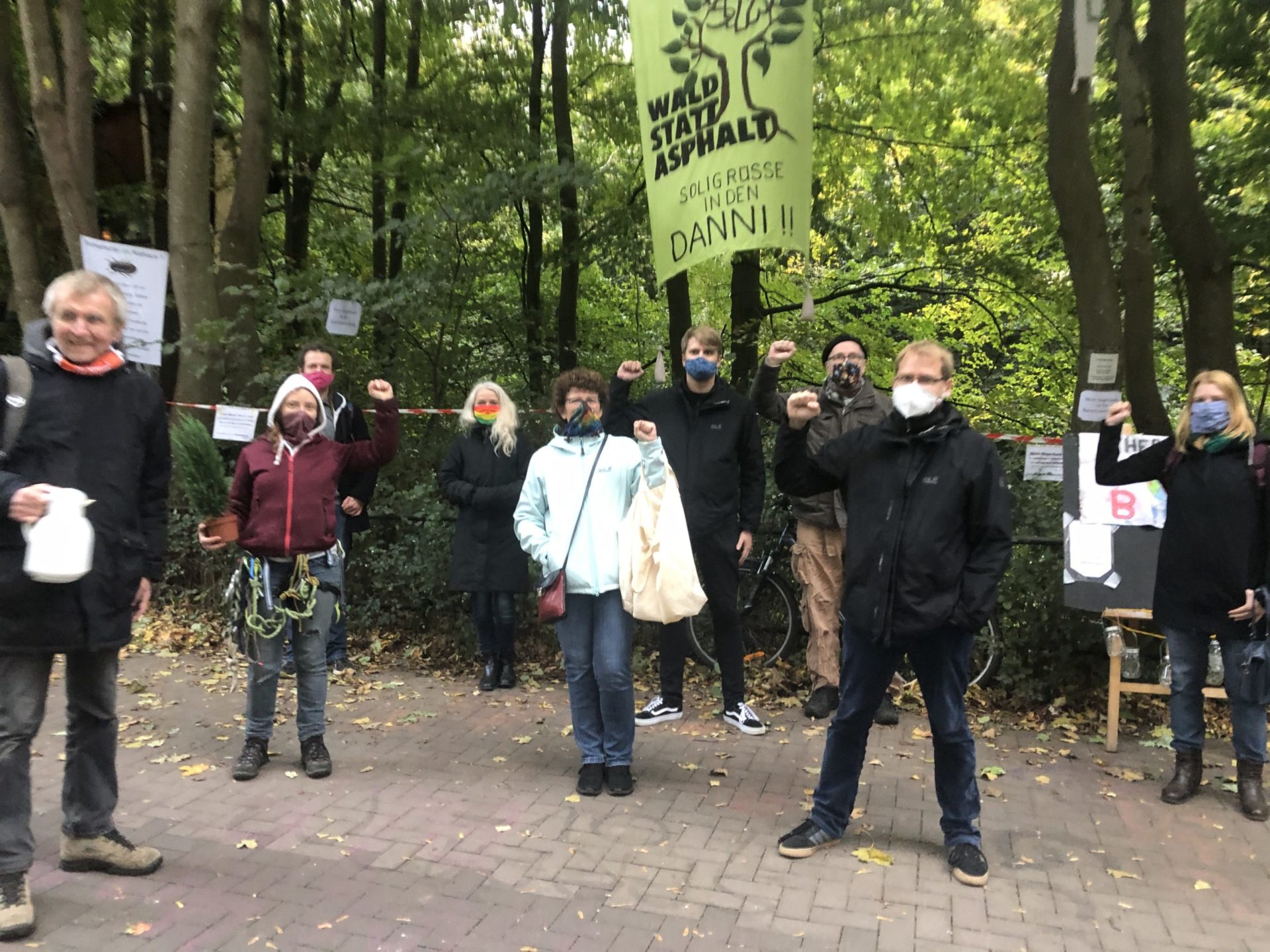 Inseln des Widerstands für Klimagerechtigkeit, gegen Klimakrise und Artensterben gibt's überall: In Flensburg soll nach dem Willen von SPD, CDU, FDP und Grünen ein Stück Wald am Bahnhof einem Hotel und Parkhaus weichen.